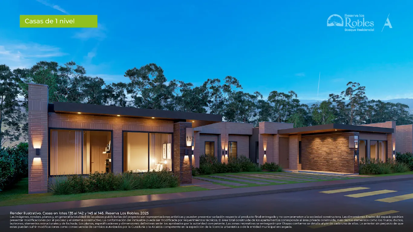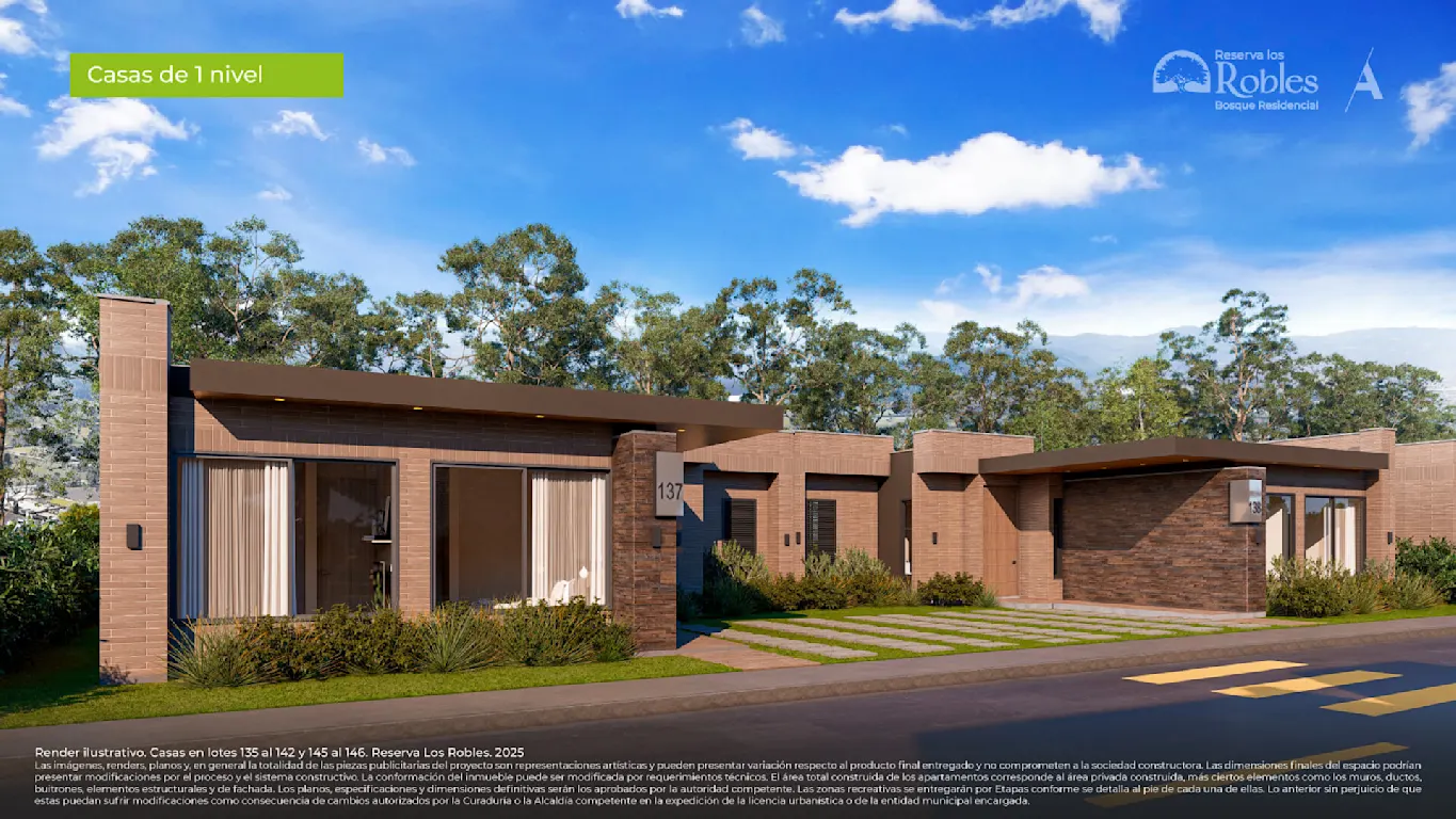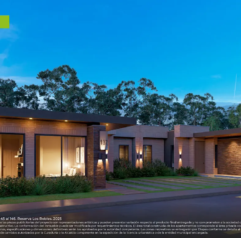 El proyecto Reserva los Robles consta de casas y lotes campestres en Cajicá, Cundinamarca, a las afueras de Bogotá, y hace parte del macroproyecto Bosque Residencial, que hoy ya es una realidad. Este proyecto está especialmente diseñado para ofrecer una mejor calidad de vida a sus residentes y se caracteriza por su variedad de espacios, logrando ser un hogar que crece contigo.