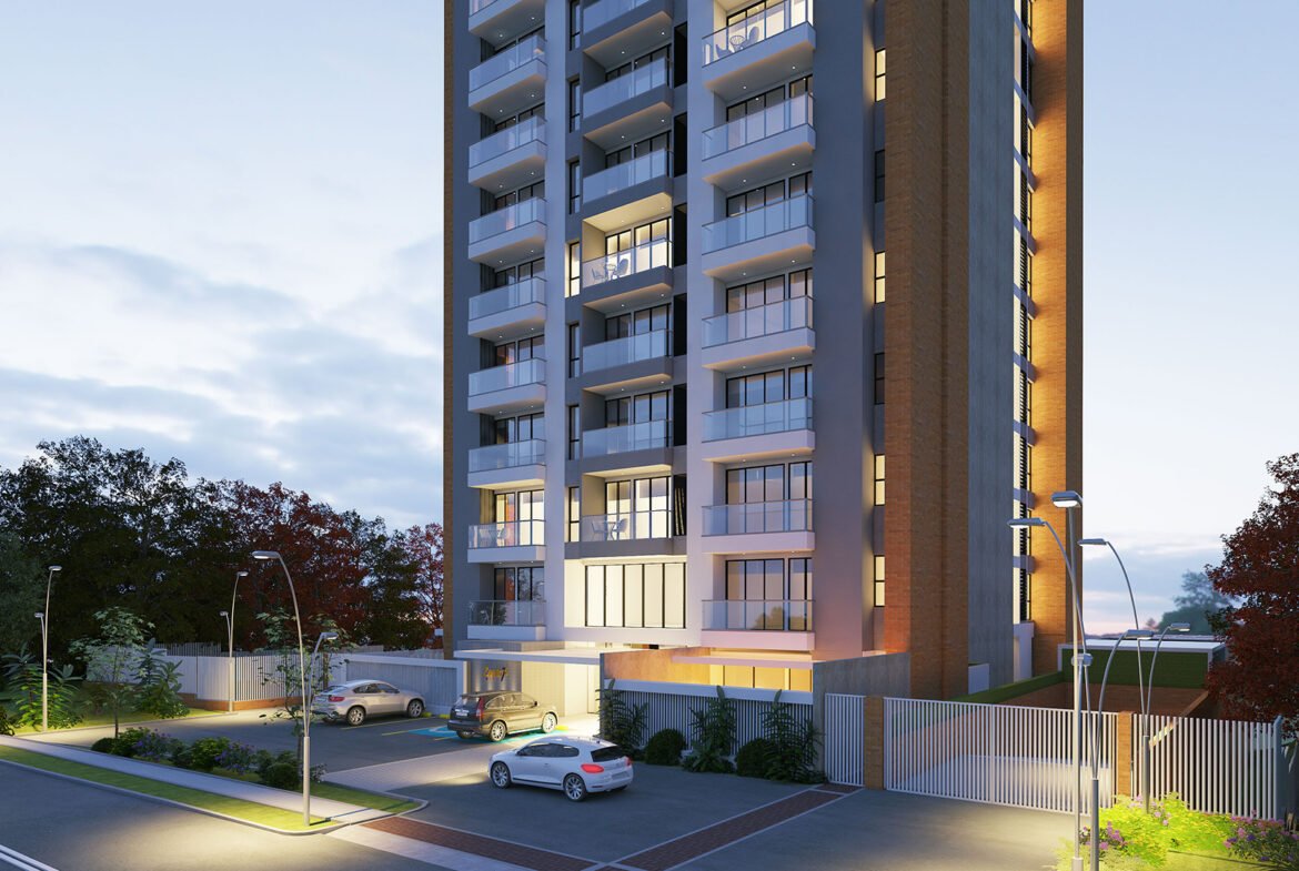 El edificio cuenta con un total de 77 exclusivos apartamentos, 73 de ellos con áreas entre 75 y 64 m2 ubicados del piso 1 al piso 12, los aptos de primer piso cuentan con fantásticas terrazas y en el piso 13 se encuentran 4 apartamentos de 94m2 con terraza cada uno.
